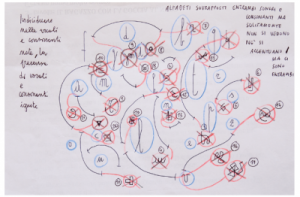 “I am refining a vocal technique based on imitating everything that can be heard with the human ear, without discrimination. I perceive the vast encyclopaedia of all sound phenomena on the earth, and I treat it like a set of notes and intervals that makes up a symphony. Each day, I make an effort to listen to, imitate and transcribe this symphony onto a score of my own, with a newly invented notation, which serves to keep my memory in order and reproduce these sounds. I call it a ‘molecular’ technique, because only a microscopic approach allows me to define the sound profile of each element. The cultural and emotive levelling carried out on all inflections and meanings of the human voice places the latter alongside all frequencies of sound. All of the sound production in the universe, whether active or passive, thus winds up on the same level, as raw materials to be coldly observed. The vocabulary is enriched with new words and the oratorical melodic scale reproduces voices taken from the smallest sound particles of the earth. This is the beginning of the path that leads backwards towards the truth of the human voice, and towards the classic power of the word”.