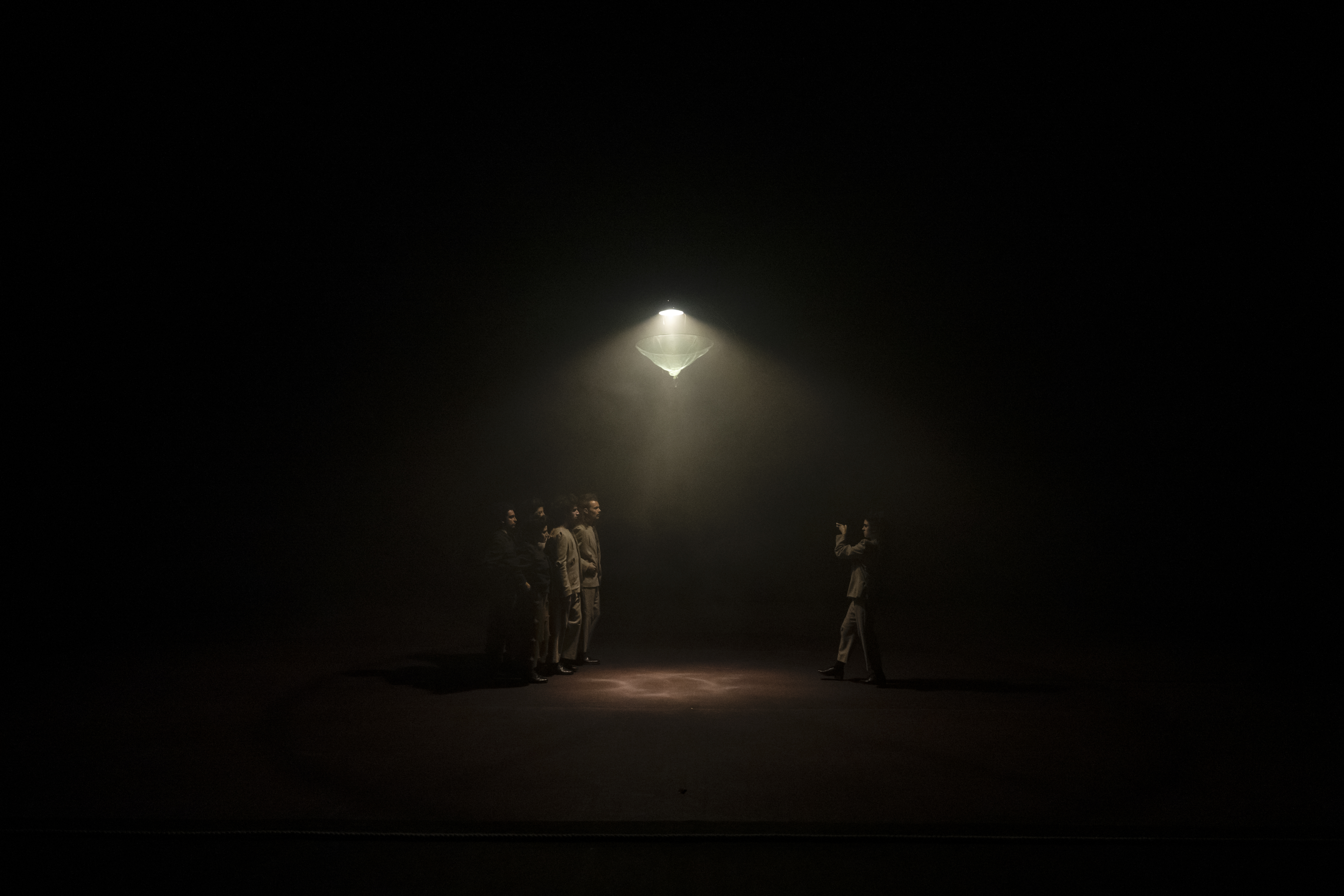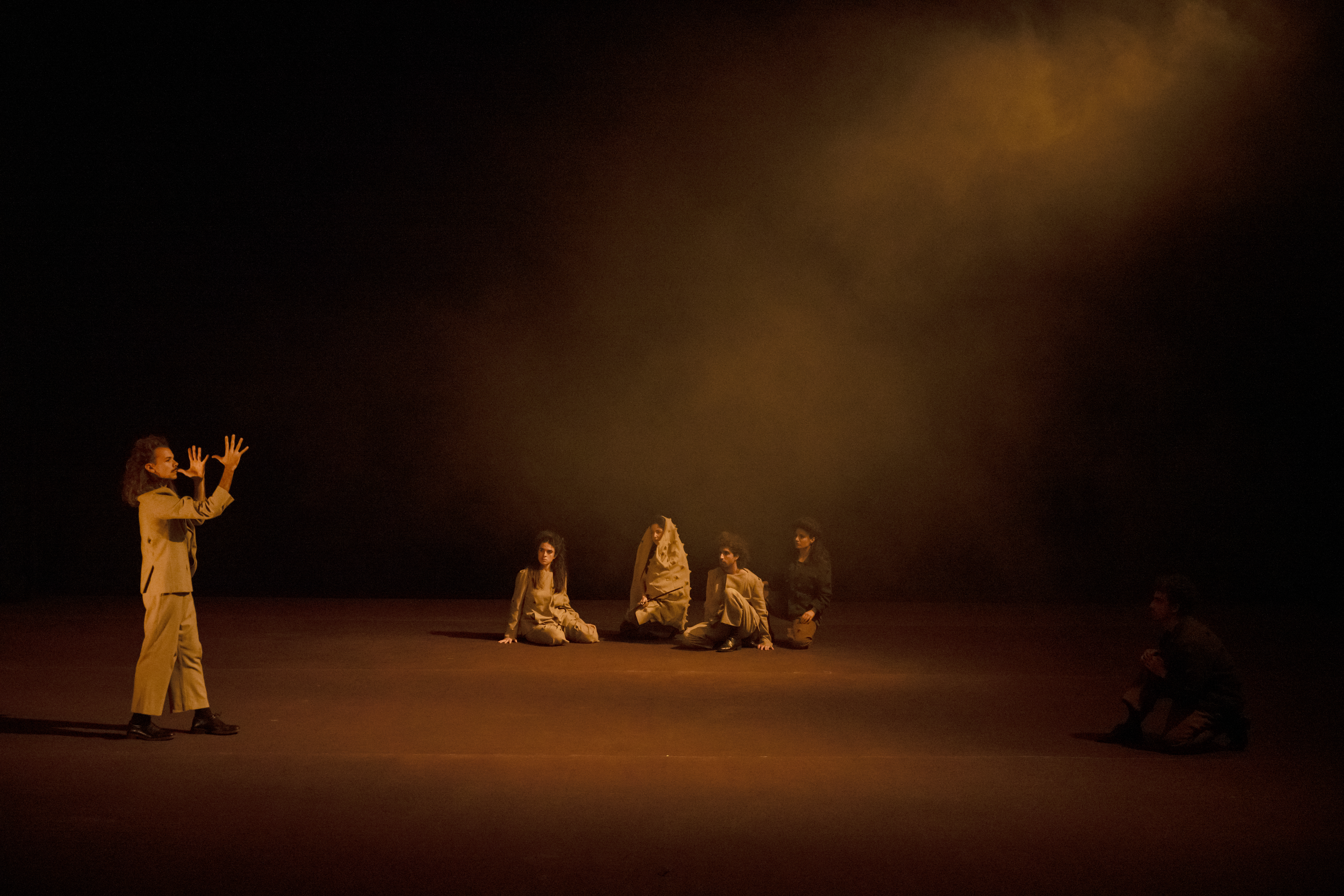 While in Claudia Castellucci’s previous dances the Dancers’ mental tension was implied by the interpretation of a rigorous choreographic structure to be awakened, here, dance is increasingly encouraged to assert itself as an art of flagrancy. A considerable amount of their efforts is expressed by an immediate decision made by each of the Dancers, who are deprived of any model. This dance looks towards an extreme simplicity, which the desert does not offer, but disturbs to the utmost degree. There are no examples available.
